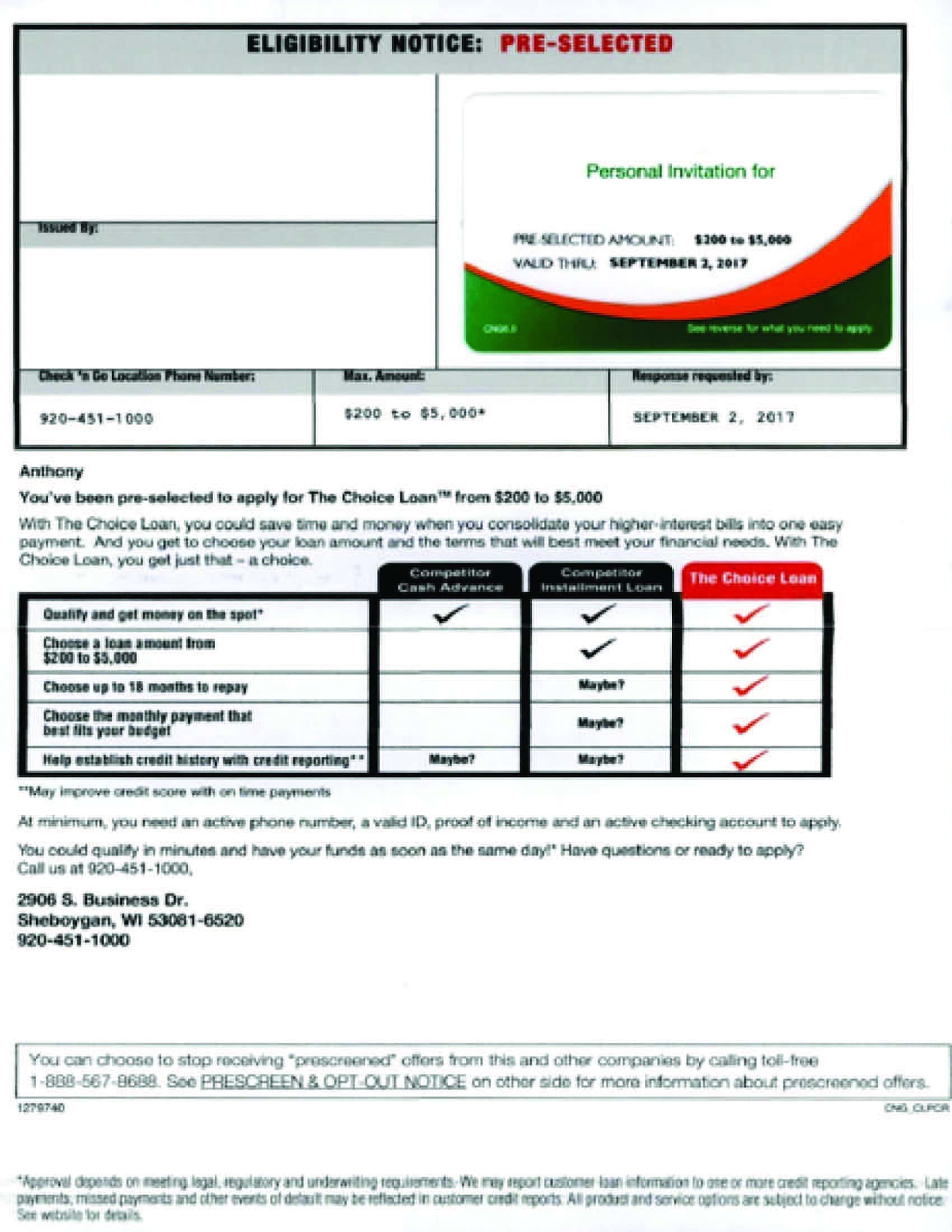Personal Loan Direct Mail